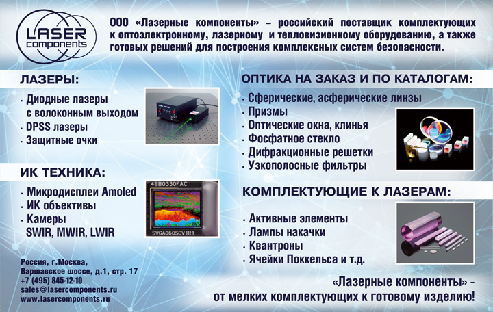 ООО «Лазерные компоненты» представит на выставке новинки лазерной, оптической и инфракрасной продукции